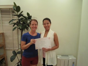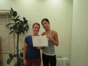2名様が18時間を修了され、ドミニカ先生から修了書が授与されました。