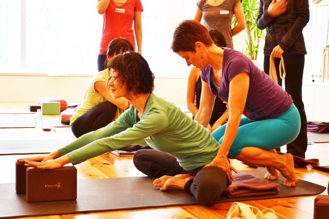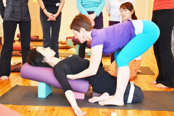 股関節の可動性を高めるポーズの中で、観察ポイントやアジャストの方法を学びました。