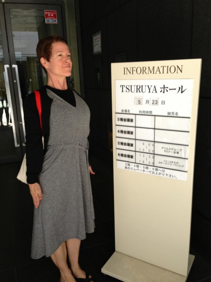 会場入り口でさっそくタダ―サナを披露してくれるお茶目なドミニカ先生です。