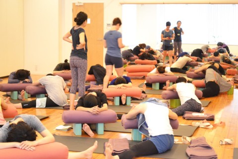 先生は「ヨガセラピーにとって道具(プロップス)はとても大切で、使いこなせると宝になる」