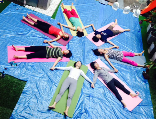 春と秋には、このテラスで風を感じながらのレッスンも。8月は屋内での朝ヨガ開催中。自由が丘という街が好きな人にはうれしい立地。トライアルレッスン(1,000円も好評)