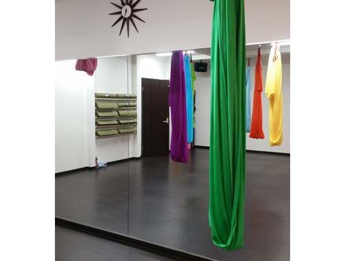 空中ヨガとも言われるスリングヨガ。体型歪み改善や女性特有の不定愁訴解消にもよいとのこと。