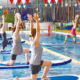 この日のレッスンに派遣されたのは、サップヨガの楽しさに魅了され指導者になったという、名古屋在住のサップヨガインストラクター、後明紀代美先生。「この日は参加者全員が初サップヨガ体験でしたが、皆さんバランスがとれると拍手で励まし合うなどアクティブなクラスになりました。開放感のあるプールのサップヨガは癒し効果も抜群です。老若男女問わず多くの方にチャレンジしてもらいたいです」
