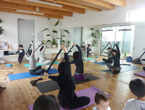 そしていま、生徒さんの間でブレイクしているのが日本初のヨガプロップ”YOGA-BOU”だという。「子育てママの肩こり解消や、ビギナーの生徒さんに肩を無理せずに動かしてもらうために使用しています。レッスンが始まるとまずヨガ棒。10分間程度、肩周りをほぐすことで殆どの方の肩こりが解消されますよ」と簗瀬さん。今後はビジネスマンやビジネスウーマン、またハンディーキャップを持った人への『ヨガ棒ワークショップ』などを通して活動の場を広げていきたいと語ってくれた。