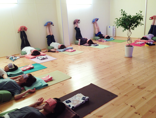 サンスタジオとムーンスタジオの両スタジオで毎日開催されている「あさヨガ」と「よるヨガ」以外にも、アシュタンガヨガやマタニティヨガクラスなどレッスンが充実している。プロップスを多用する夜の「リストラティブクラス」や「陰よが」では、「体の奥底からわき水のようにあふれる、新しいエネルギーや、心の静けさなどを味わってもらいたい」と沼先生。レギュラークラス以外にも、ゲスト講師を招いて行われるワークショップや、遠足といったイベントも充実し、カフェに立ち寄るような気軽さが人気だ。