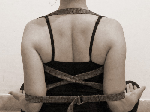 輪の大きさは、ヨガベルトを肩甲骨下にひっかけて両腕を前に伸ばした時にきれいな長方形ができる程度が目安です。