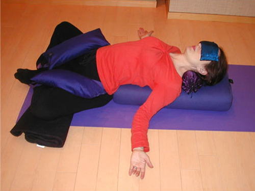 セルフ・プラクティスとして、リストラティブ・ヨーガのクラスで、就寝前に、また女性は月経中にも行えるポーズの1つです。このポーズは、深いリラックス状態と、しっかりとサポートされている感じをもたらしてくれます。まるで、雲の上にいるような感覚です。