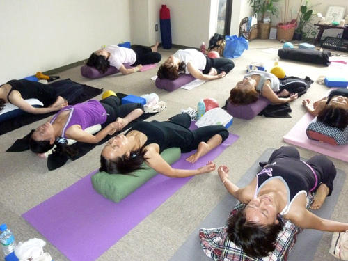 現在、通常レッスンでボルスターは使用しませんが、特別なイベントやワークショップ、ハンディキャップヨガで使用します。