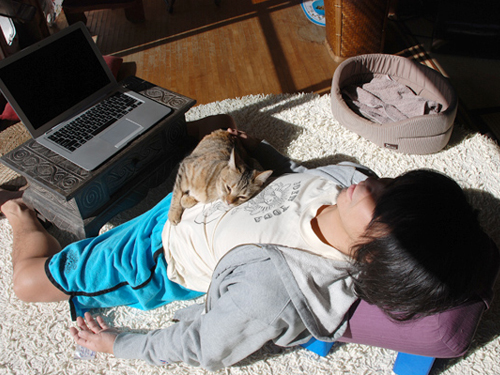 アシュタンガヨガの練習やクラスの時は基本的に使いませんが、ヴィンヤサやハタヨガのクラスをする時は、クラスの最後をリストラティブヨガでしめる事が多いので、今や必須の「お仕事グッズ」でもあります。「ピッっておすとボン!」って大きくなるドラえもん系のボルスターができたら、「旅のお供グッズ」にもしてしまいそうで。。。座布団折ればいいか。。。