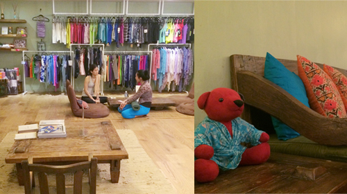 <写真>ゆったりと寛げる清潭スタジオ内のラウンジ。最新ヨガウエアやマットなどが揃うブティックを併設