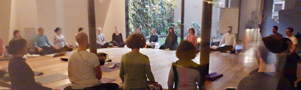 ヨガ寺としてのYOGAIAの象徴として、無料で行なわれているヨガ哲学のクラスがある。アルヴィゼさんが、ヨガスートラを分かりやすく読み解くレクチャークラスで、水曜日の朝8時からという時間帯に関わらず人気クラスだ。「ヨガとは、“見るもの”と“見られる者”を統合するのではなく、“見るもの”と“見られる者”を識別すること。自分自身を客観的に見つめ、必要であれば笑い飛ばせること。これは、バルセロナのような街で暮らす上で大いに役立つスキルなんだ。変化を望むならば自分自身を見つめる必要があるし、そのためには静寂な時間を持つことが必要なんだ」。スタジオでは、ヨガ哲学の他にメディテーションクラスも無料で行われている。