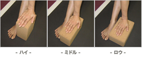 そこで、床に面する手の下にブロックを置いてサポートして、土台を強化することで、全身の力みが解消できます。