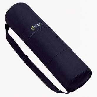 マットとラグ、ウェアなどをまとめて収納できる薄手のキャンバス生地のサイドオープンタイプのマットバッグ。正面に小物を収納できるファスナー付きのポケットがついています。ショルダーの長さを調節できるアジャスター付き。